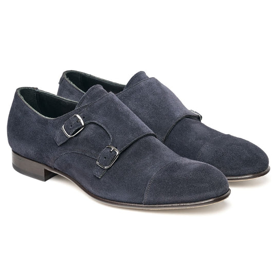 Double Buckle Monk Shoe in Oceano Suede