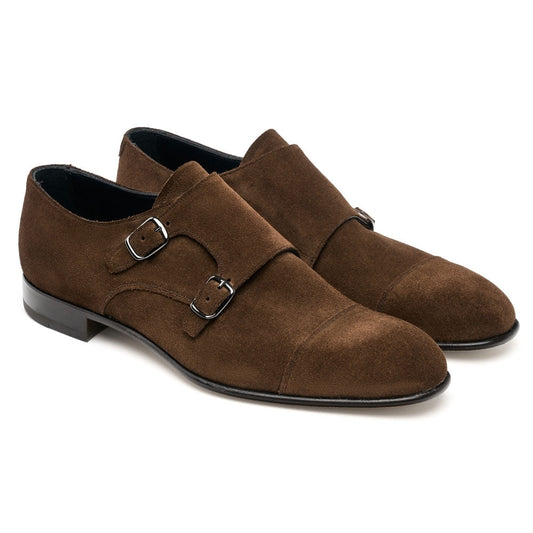 Double Buckle Monk Shoe in Plough Suede